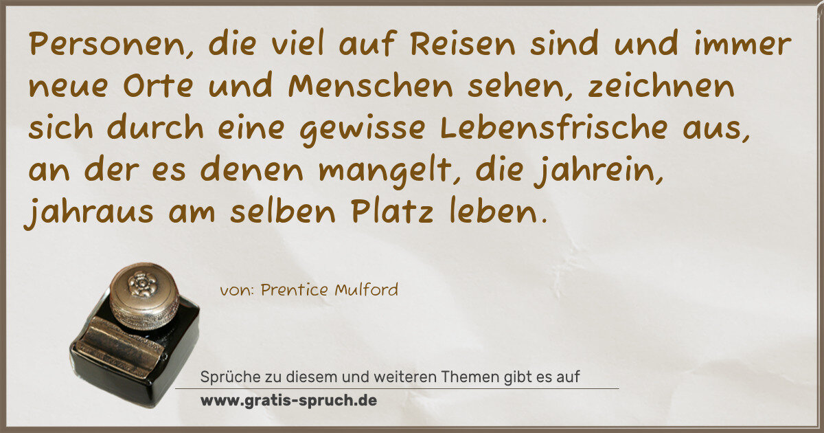und immer neue Orte und Menschen sehen, zeichnen sich durch eine gewisse Lebensfrische aus, an der es denen mangelt, die jahrein, jahraus am selben Platz leben.
