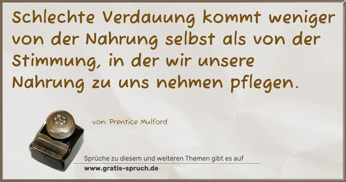 »Schlechte Verdauung kommt weniger von der Nahrung selbst als von der Stimmung, in der wir unsere Nahrung zu uns nehmen pflegen.