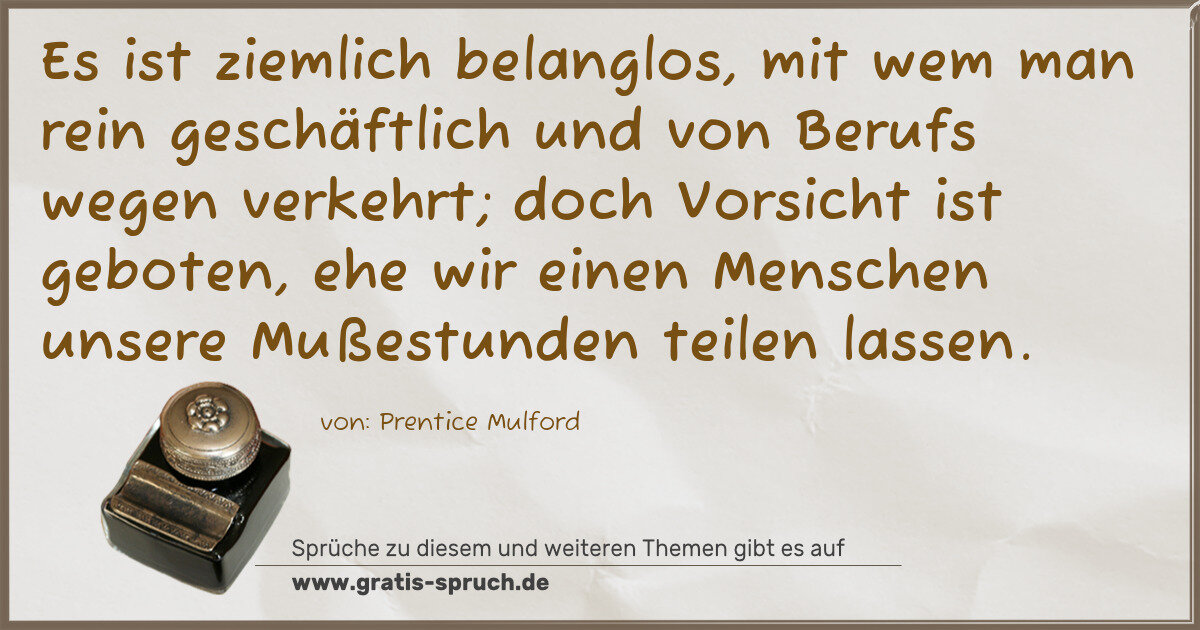 »Es ist ziemlich belanglos, mit wem man rein geschäftlich und von Berufs wegen verkehrt; doch Vorsicht ist geboten, ehe wir einen Menschen unsere Mußestunden teilen lassen.