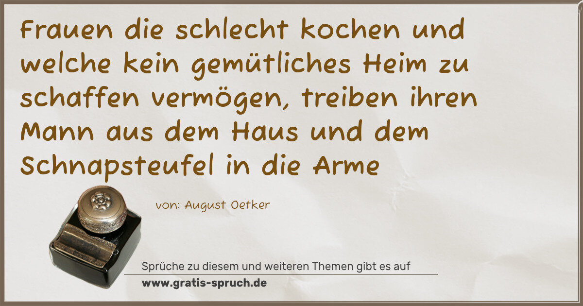 »Frauen die schlecht kochen und welche kein gemütliches Heim zu schaffen vermögen, treiben ihren Mann aus dem Haus und dem Schnapsteufel in die Arme