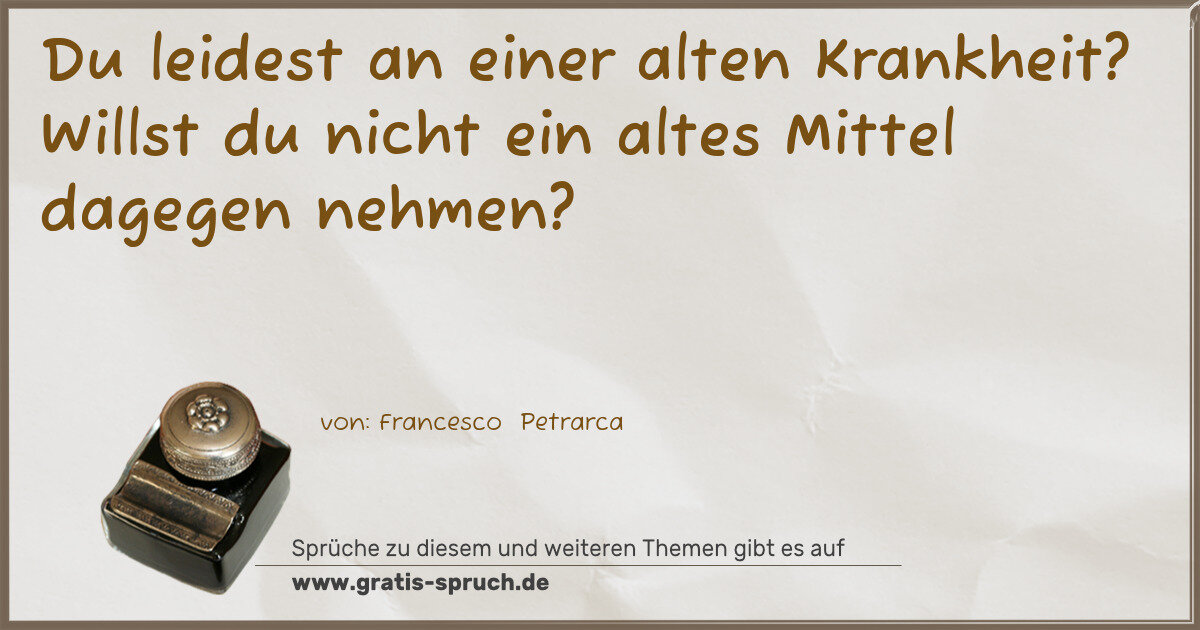Du leidest an einer alten Krankheit? Willst du nicht ein altes Mittel dagegen nehmen?