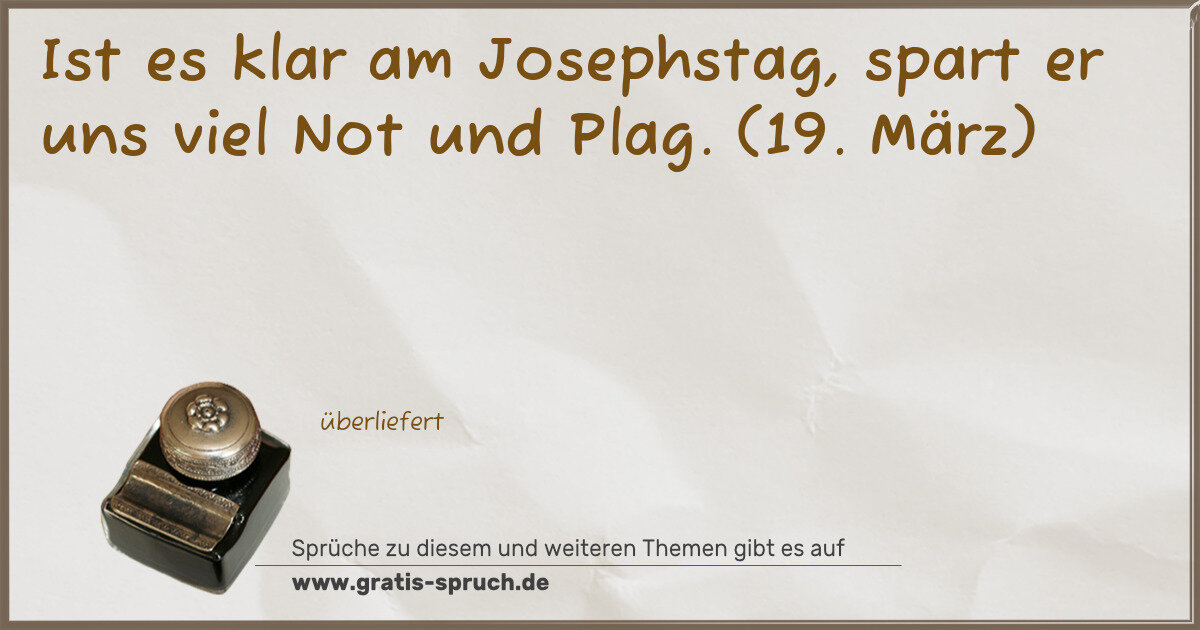 Ist es klar am Josephstag, spart er uns viel Not und Plag. (19. März)