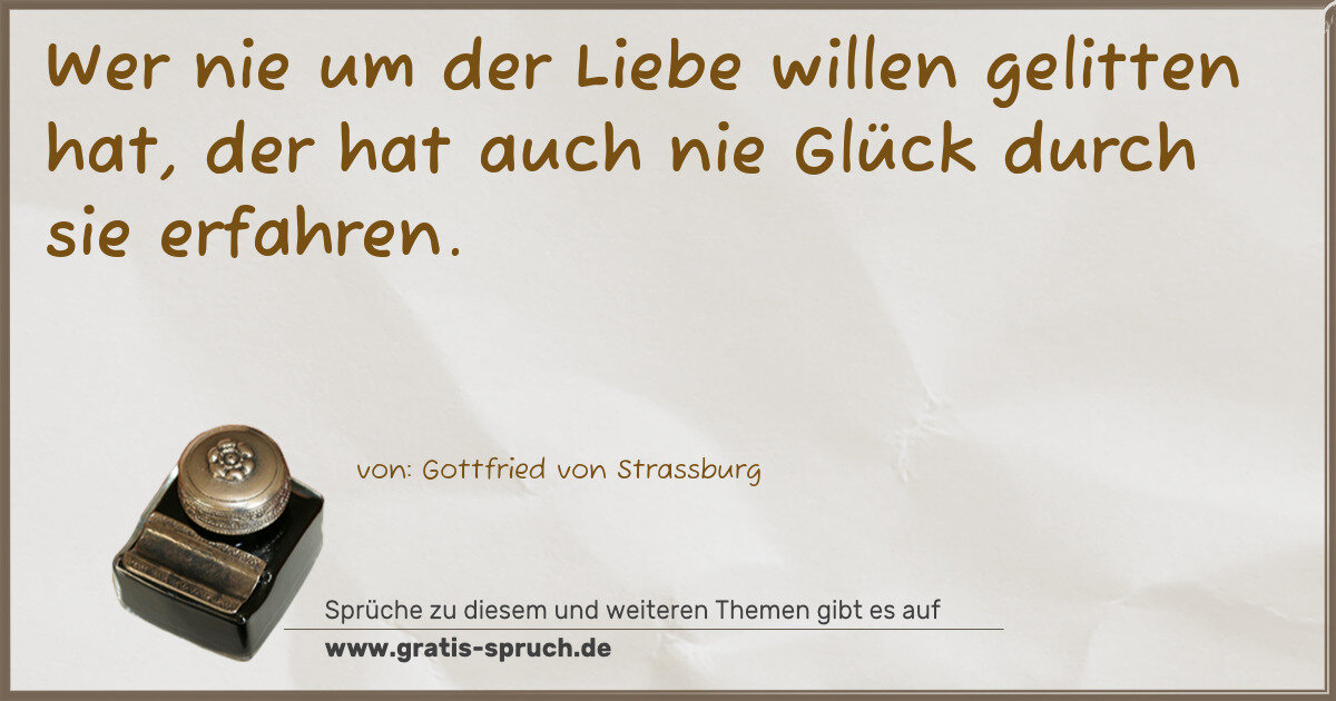 Wer nie um der Liebe willen gelitten hat, der hat auch nie Glück durch sie erfahren.