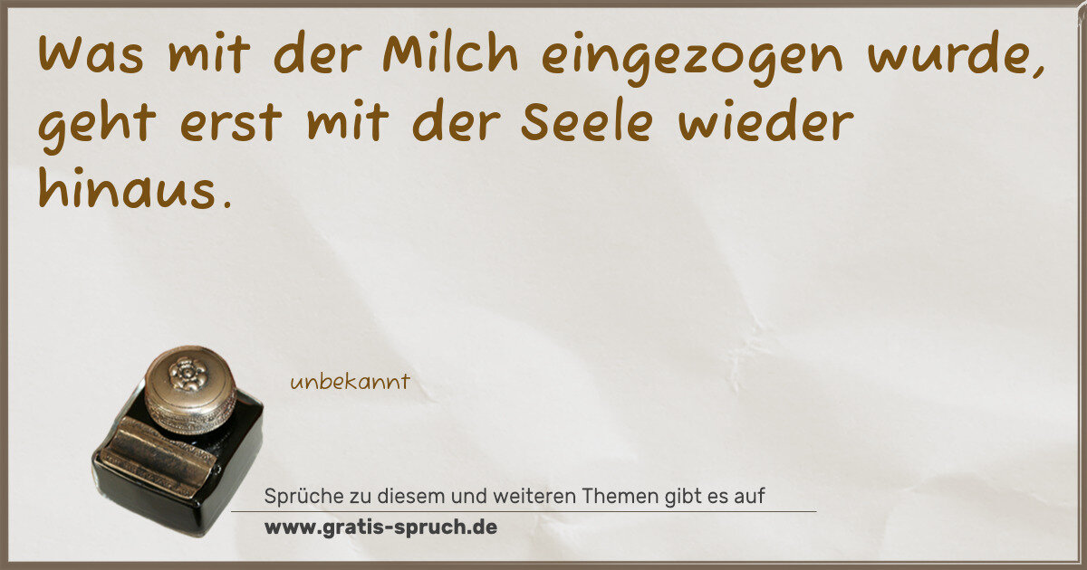 Was mit der Milch eingezogen wurde, geht erst mit der Seele wieder hinaus.