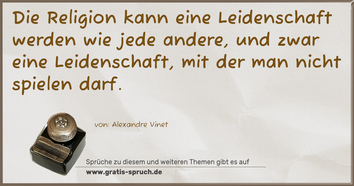 Die Religion kann eine Leidenschaft werden wie jede andere, und zwar eine Leidenschaft, mit der man nicht spielen darf.