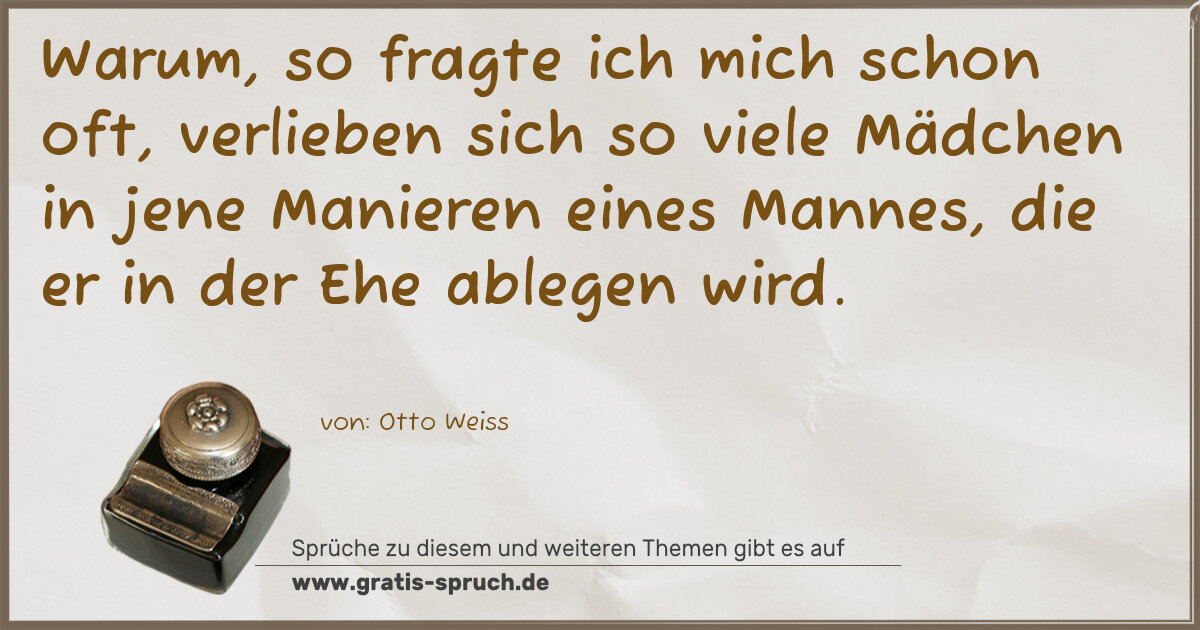 Warum, so fragte ich mich schon oft, verlieben sich so viele Mädchen in jene Manieren eines Mannes, die er in der Ehe ablegen wird.