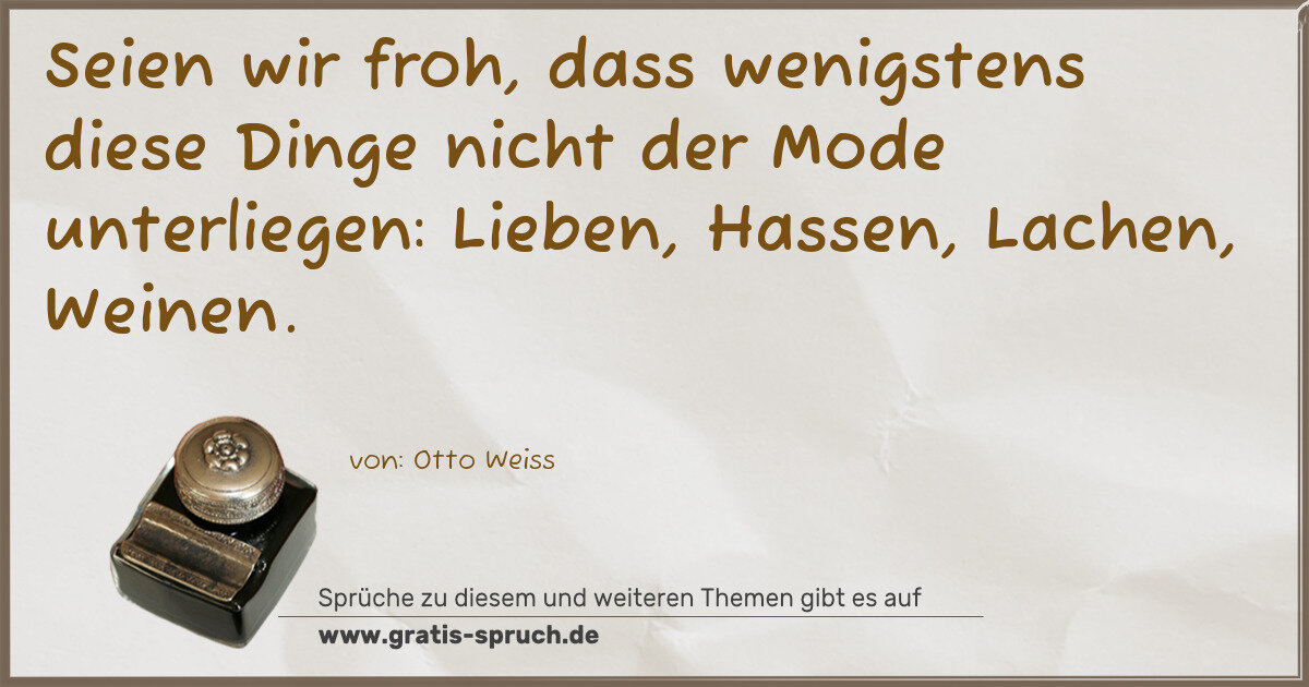 Seien wir froh, dass wenigstens diese Dinge nicht der Mode unterliegen: Lieben, Hassen, Lachen, Weinen.