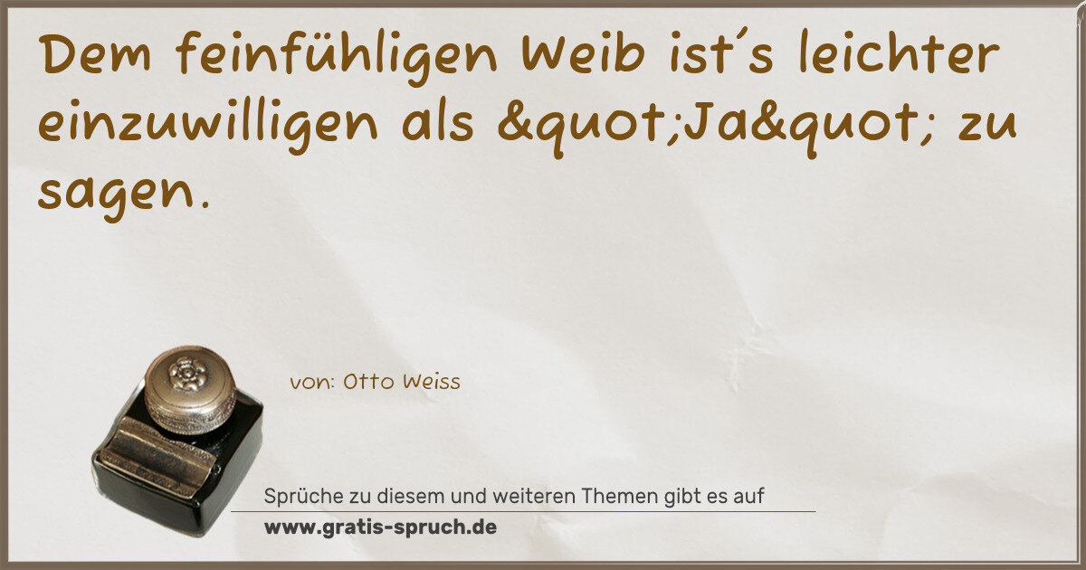 Dem feinfühligen Weib ist's leichter einzuwilligen als "Ja" zu sagen.