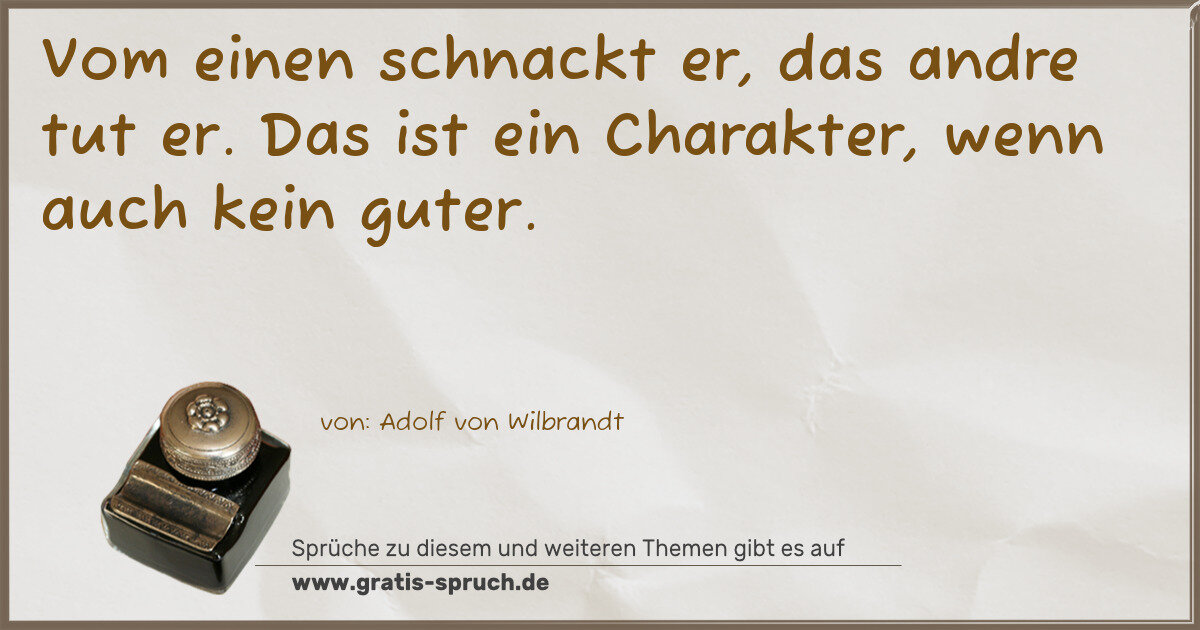 Vom einen schnackt er, das andre tut er. Das ist ein Charakter, wenn auch kein guter.