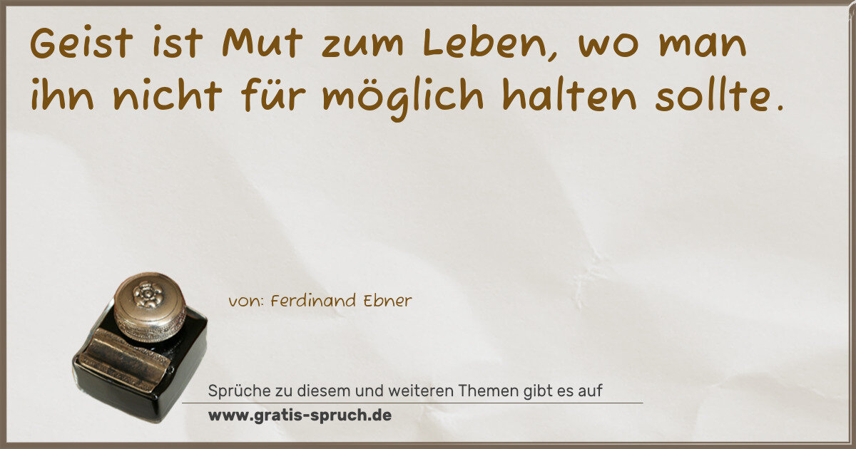 Geist ist Mut zum Leben, wo man ihn nicht für möglich halten sollte.