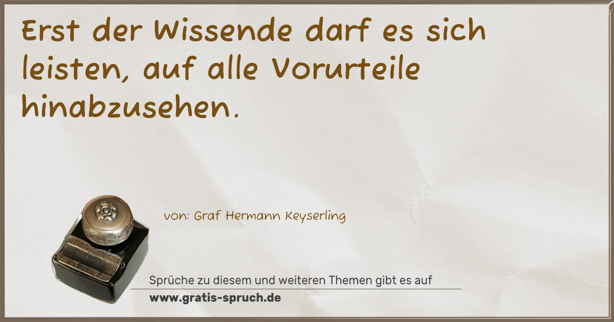 Erst der Wissende darf es sich leisten, auf alle Vorurteile hinabzusehen.