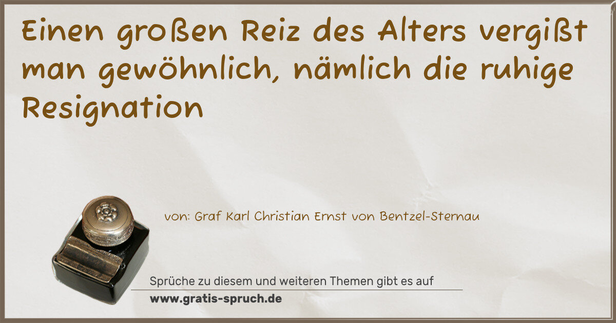 Einen großen Reiz des Alters vergißt man gewöhnlich, nämlich die ruhige Resignation
