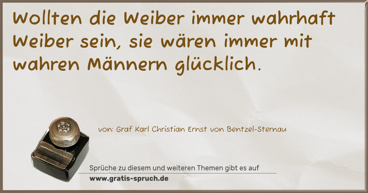 Wollten die Weiber immer wahrhaft Weiber sein, sie wären immer mit wahren Männern glücklich.