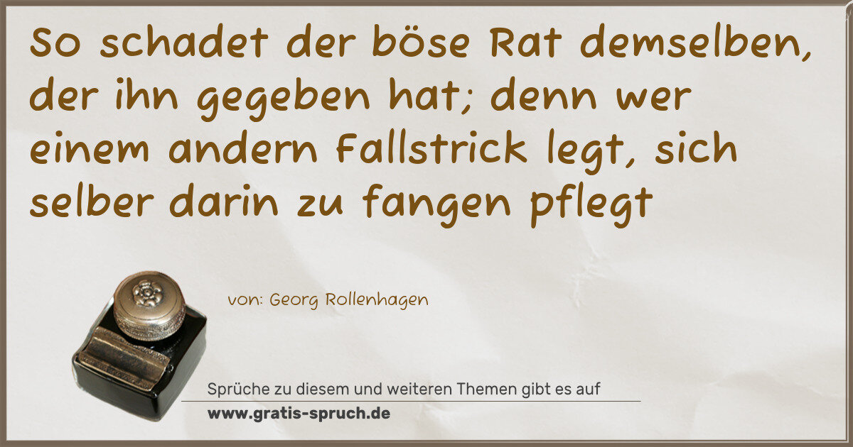 So schadet der böse Rat demselben, der ihn gegeben hat; denn wer einem andern Fallstrick legt, sich selber darin zu fangen pflegt