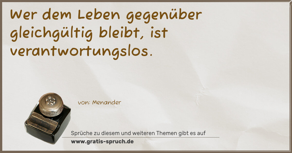 Wer dem Leben gegenüber gleichgültig bleibt, ist verantwortungslos.