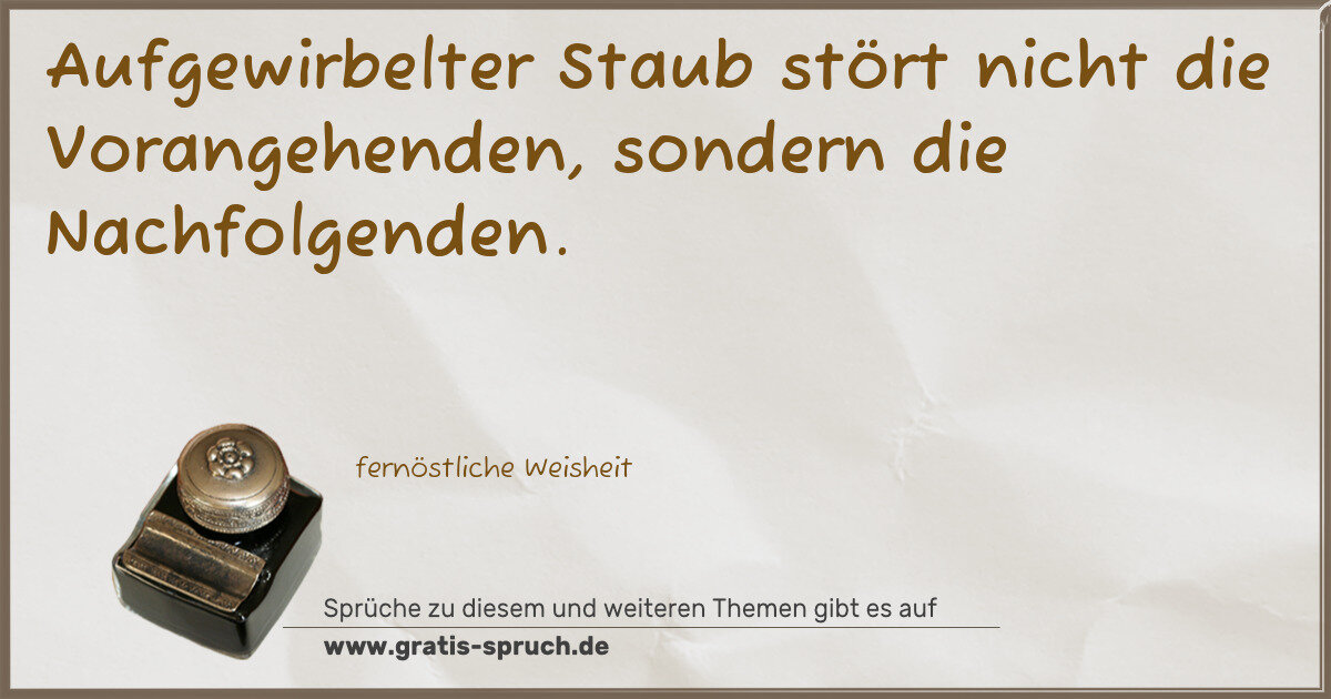 Aufgewirbelter Staub stört nicht die Vorangehenden, sondern die Nachfolgenden.