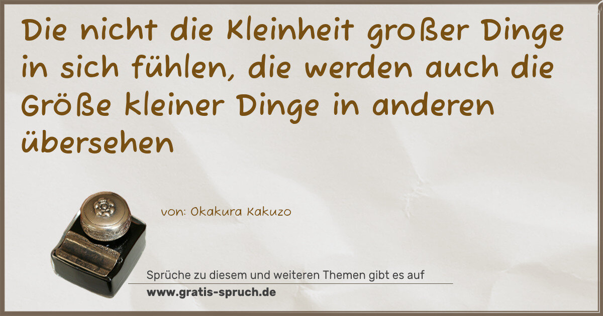 Die nicht die Kleinheit großer Dinge in sich fühlen, die werden auch die Größe kleiner Dinge in anderen übersehen