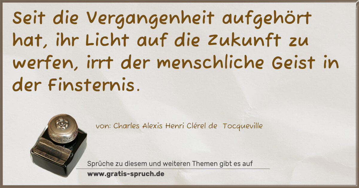 Seit die Vergangenheit aufgehört hat, ihr Licht auf die Zukunft zu werfen, irrt der menschliche Geist in der Finsternis.
