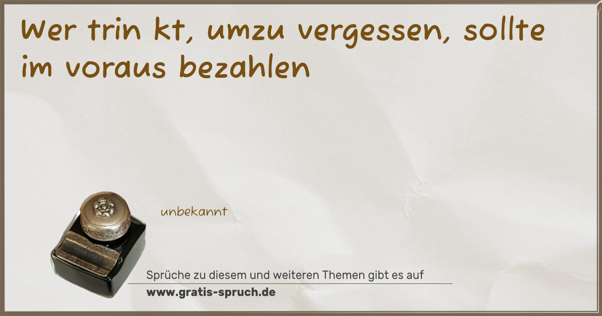 Wer trin kt, umzu vergessen, sollte im voraus bezahlen