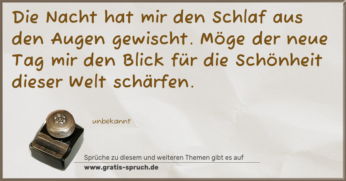 Die Nacht hat mir den Schlaf aus den Augen gewischt. Möge der neue Tag mir den Blick für die Schönheit dieser Welt schärfen.