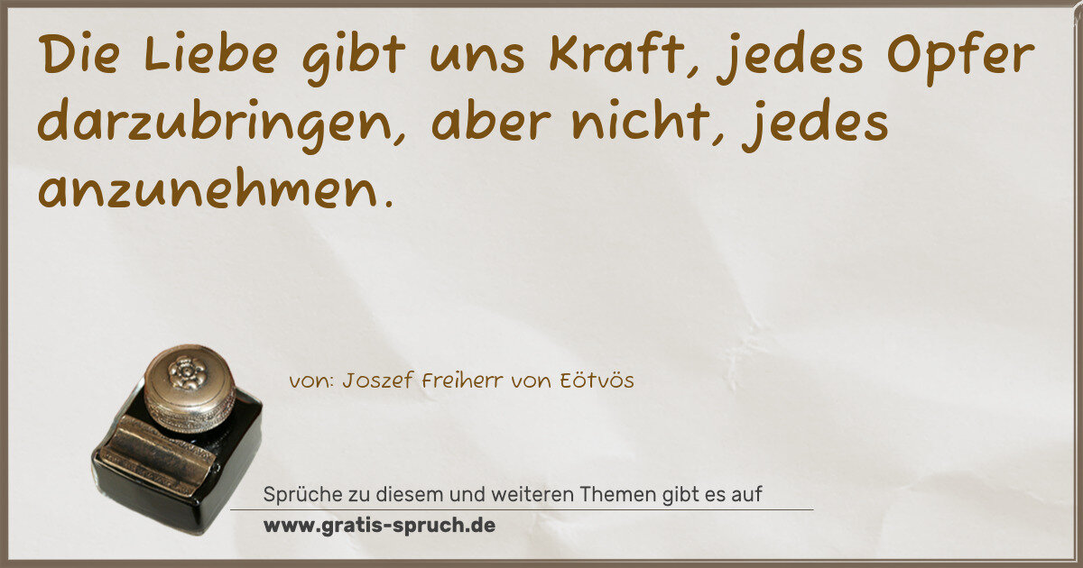 Die Liebe gibt uns Kraft, jedes Opfer darzubringen, aber nicht, jedes anzunehmen.