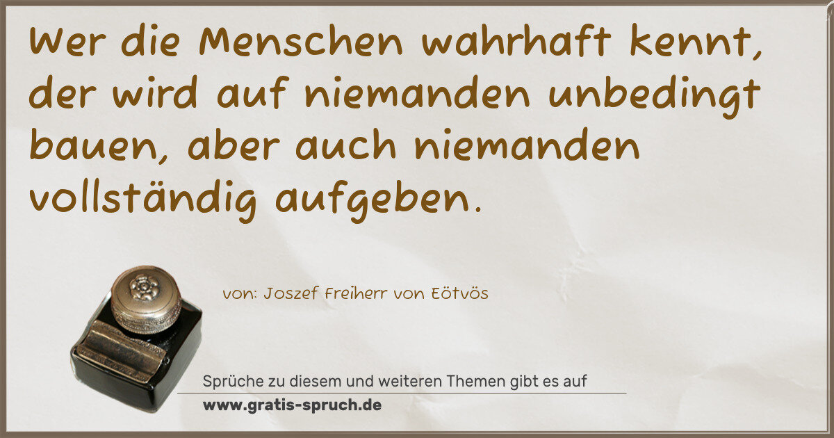 Wer die Menschen wahrhaft kennt, der wird auf niemanden unbedingt bauen, aber auch niemanden vollständig aufgeben.