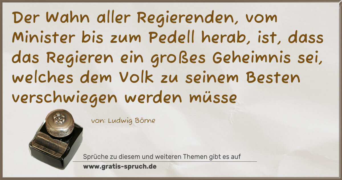 »Der Wahn aller Regierenden, vom Minister bis zum Pedell herab, ist, dass das Regieren ein großes Geheimnis sei, welches dem Volk zu seinem Besten verschwiegen werden müsse
