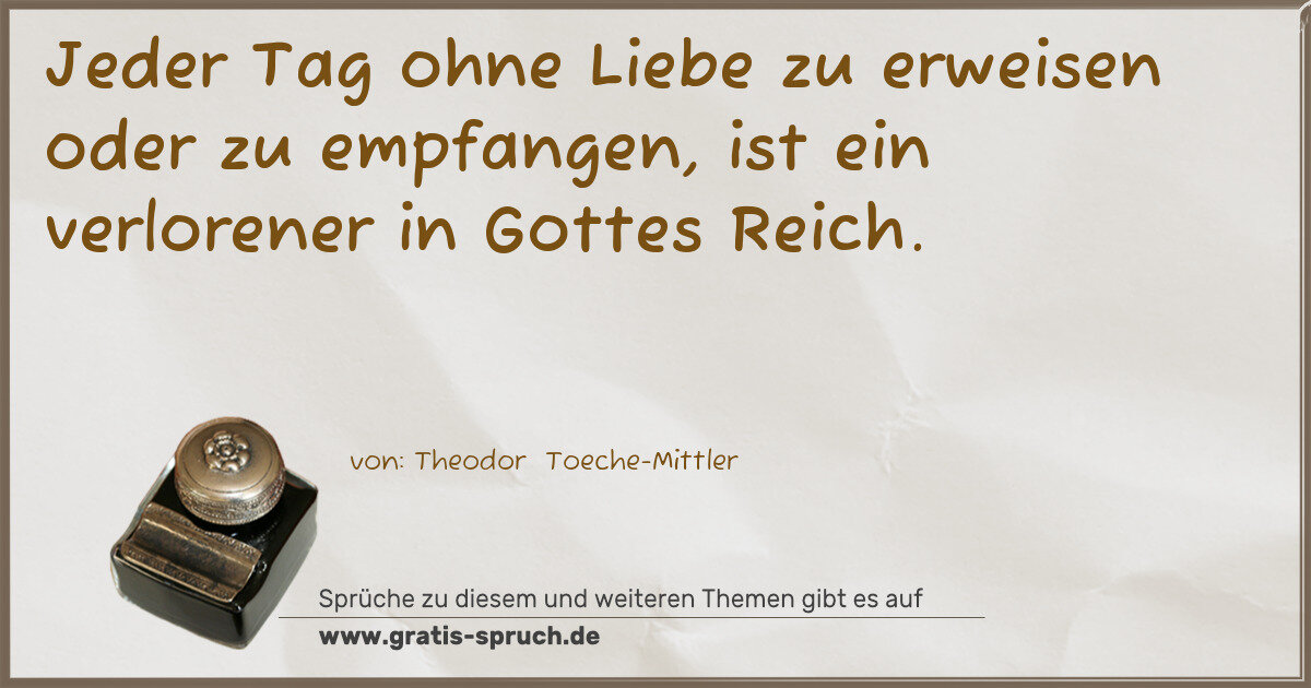 Jeder Tag ohne Liebe zu erweisen oder zu empfangen, ist ein verlorener in Gottes Reich.