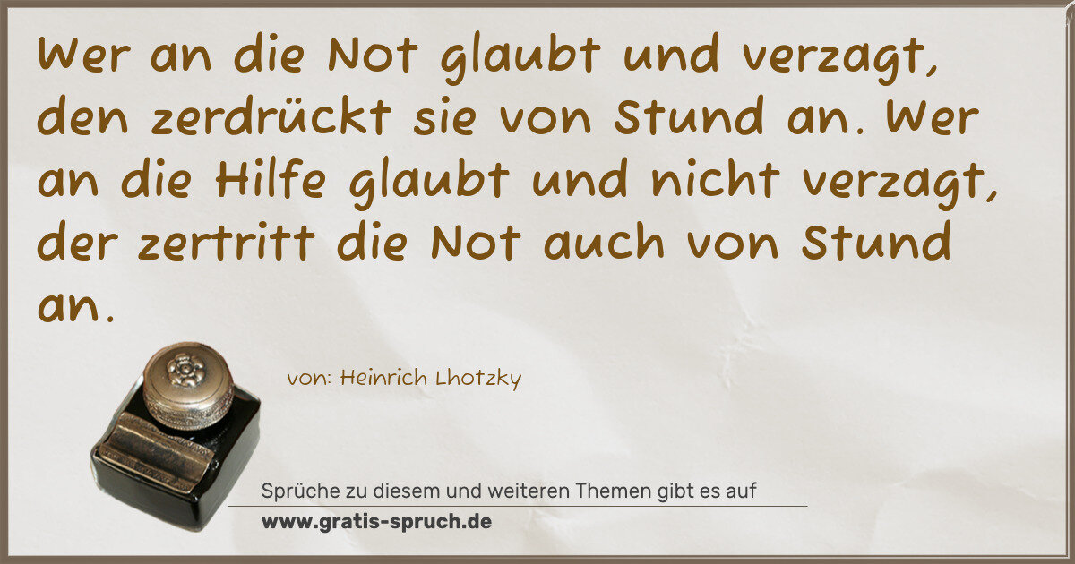 »Wer an die Not glaubt und verzagt, den zerdrückt sie von Stund an. Wer an die Hilfe glaubt und nicht verzagt, der zertritt die Not auch von Stund an.