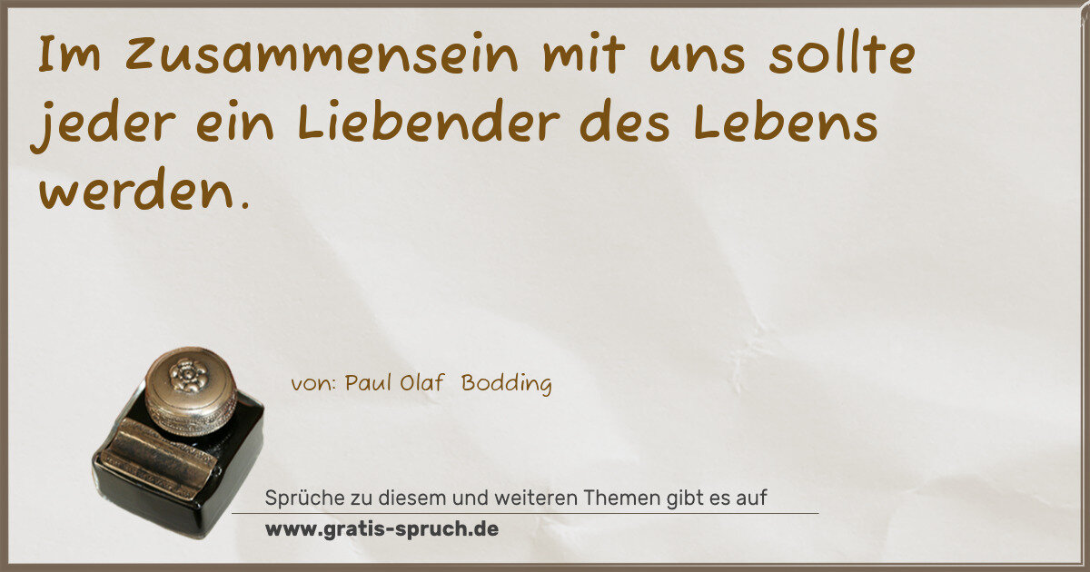 Im Zusammensein mit uns sollte jeder ein Liebender des Lebens werden.