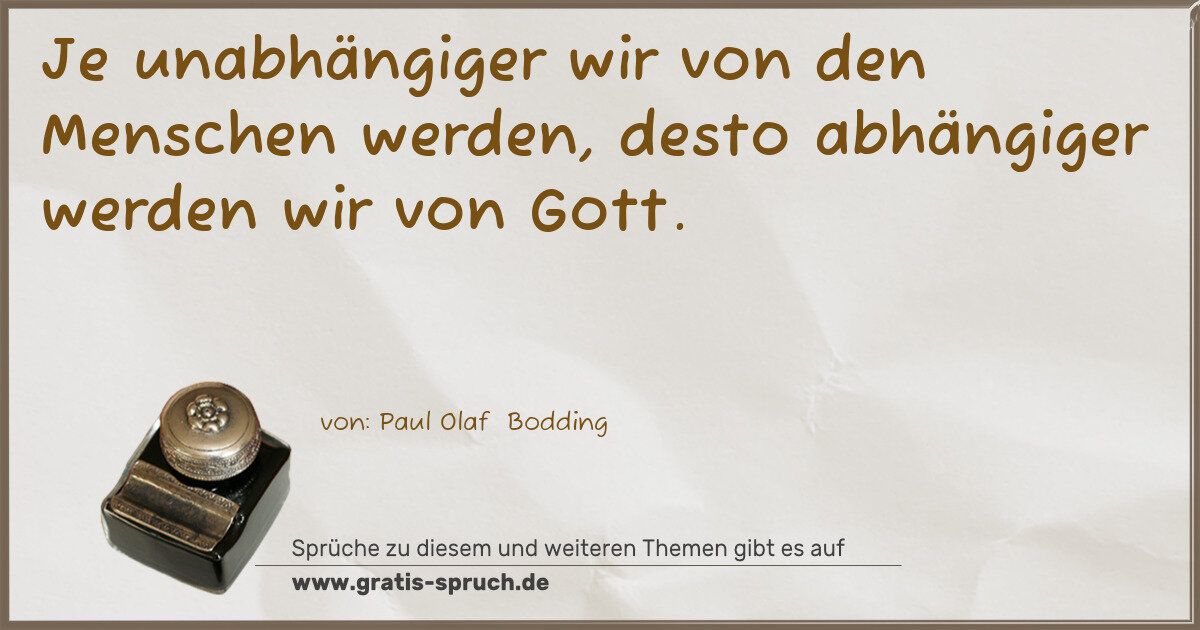 Je unabhängiger wir von den Menschen werden, desto abhängiger werden wir von Gott.