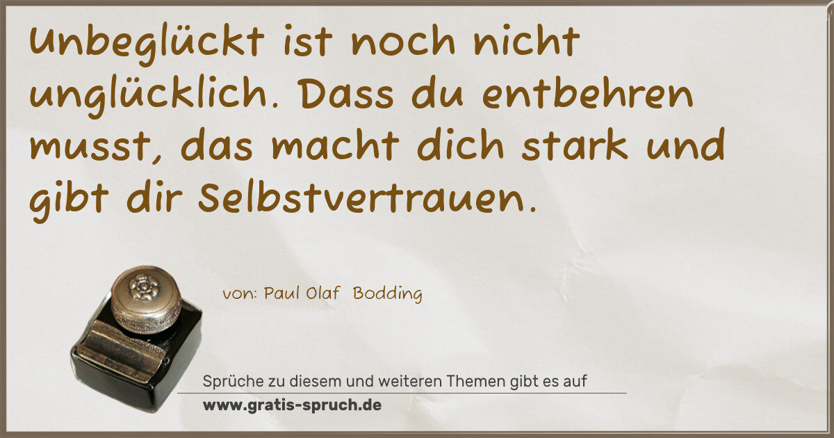 Unbeglückt ist noch nicht unglücklich. Dass du entbehren musst, das macht dich stark und gibt dir Selbstvertrauen.