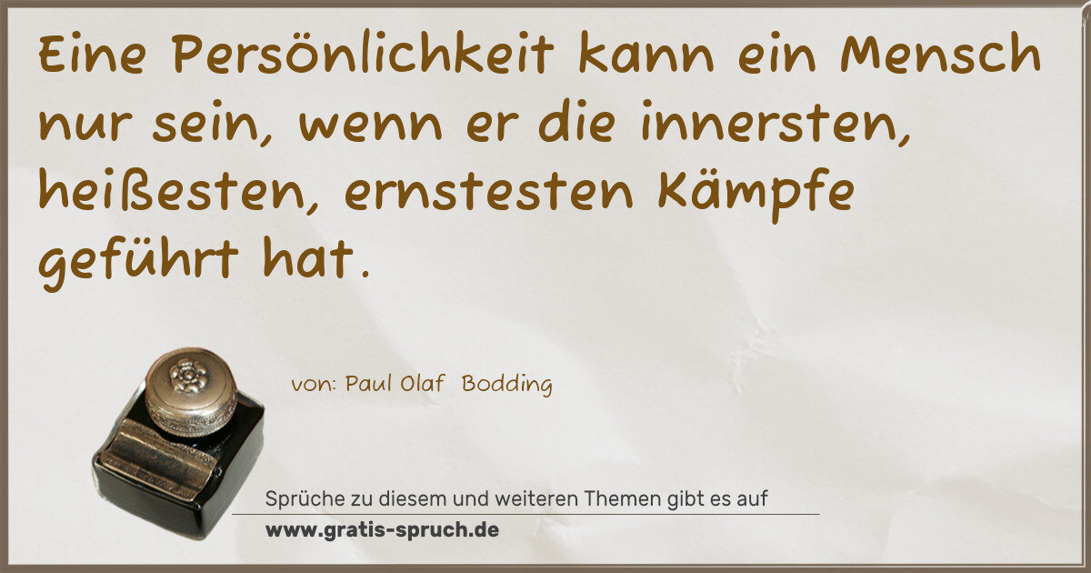 Eine Persönlichkeit kann ein Mensch nur sein, wenn er die innersten, heißesten, ernstesten Kämpfe geführt hat.