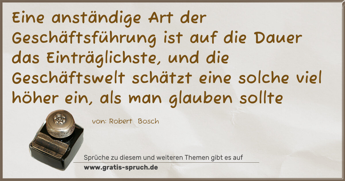 »Eine anständige Art der Geschäftsführung ist auf die Dauer das Einträglichste, und die Geschäftswelt schätzt eine solche viel höher ein, als man glauben sollte