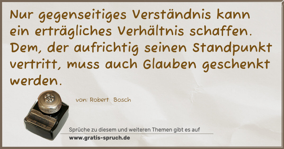 »Nur gegenseitiges Verständnis kann ein erträgliches Verhältnis schaffen. Dem, der aufrichtig seinen Standpunkt vertritt, muss auch Glauben geschenkt werden.