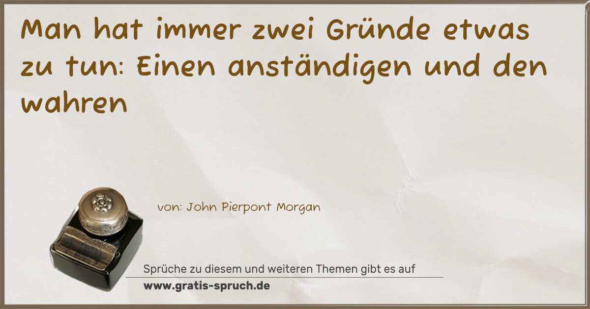 Man hat immer zwei Gründe etwas zu tun: Einen anständigen und den wahren