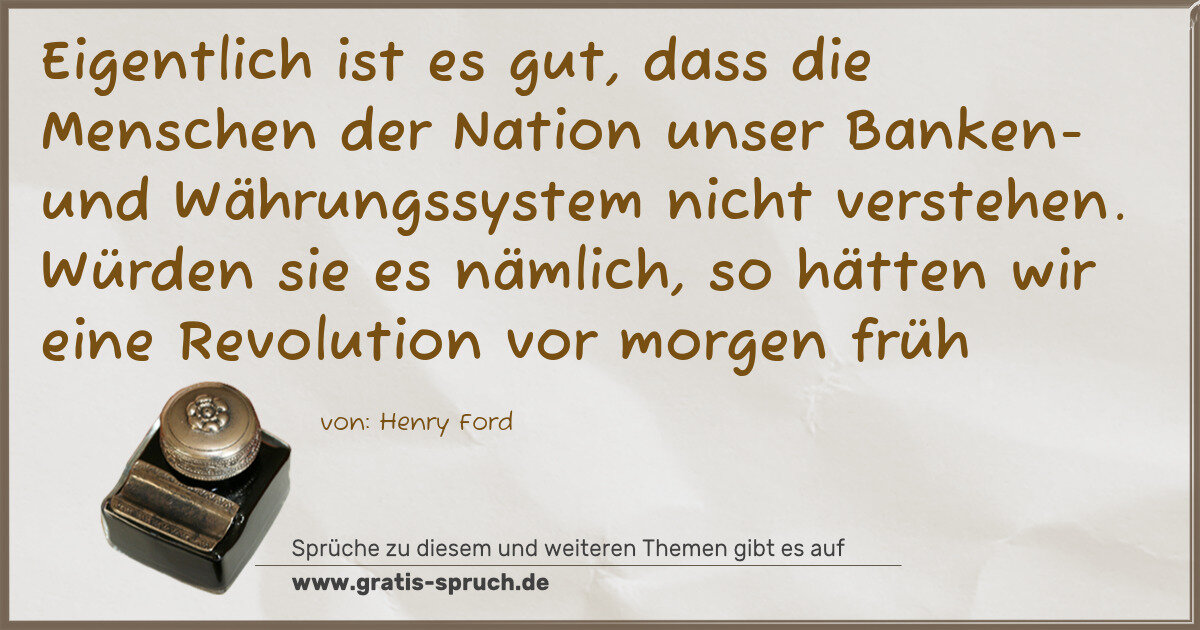 »Eigentlich ist es gut, dass die Menschen der Nation unser Banken- und Währungssystem nicht verstehen. Würden sie es nämlich, so hätten wir eine Revolution vor morgen früh
