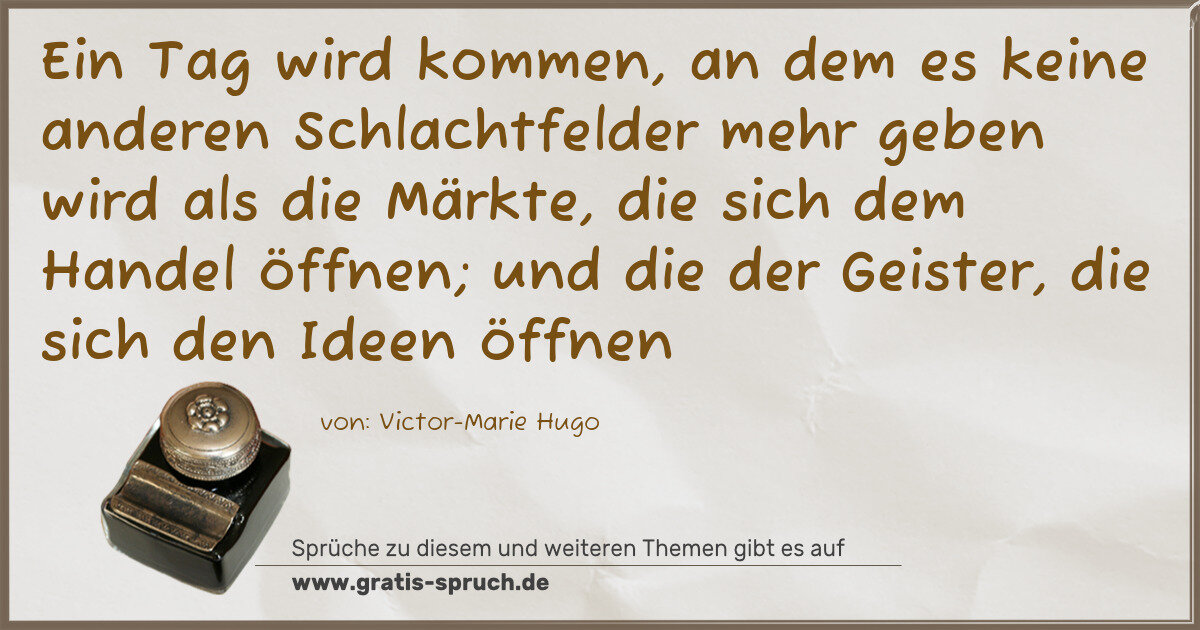 »Ein Tag wird kommen, an dem es keine anderen Schlachtfelder mehr geben wird als die Märkte, die sich dem Handel öffnen; und die der Geister, die sich den Ideen öffnen