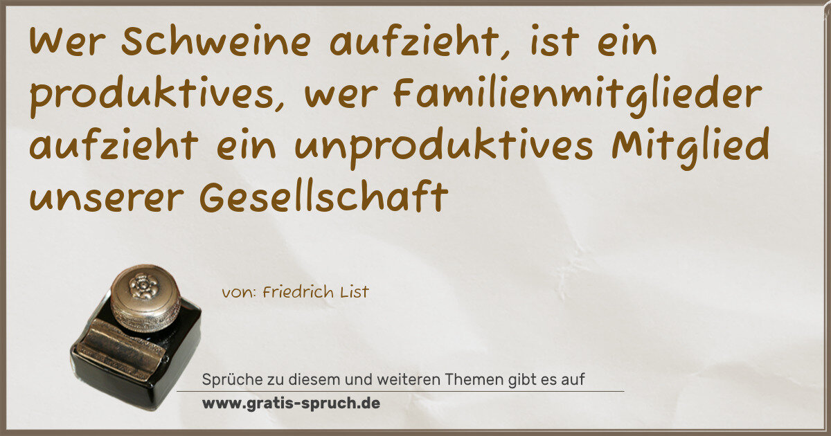 Wer Schweine aufzieht, ist ein produktives, wer Familienmitglieder aufzieht ein unproduktives Mitglied unserer Gesellschaft