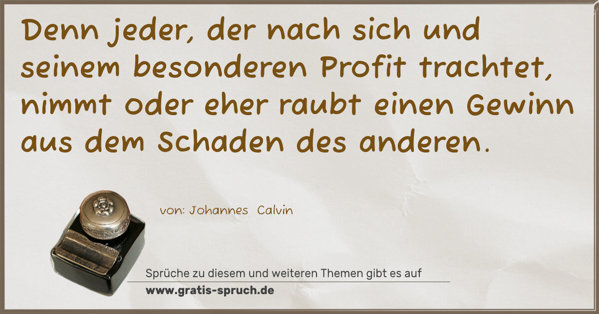 »Denn jeder, der nach sich und seinem besonderen Profit trachtet, nimmt oder eher raubt einen Gewinn aus dem Schaden des anderen.