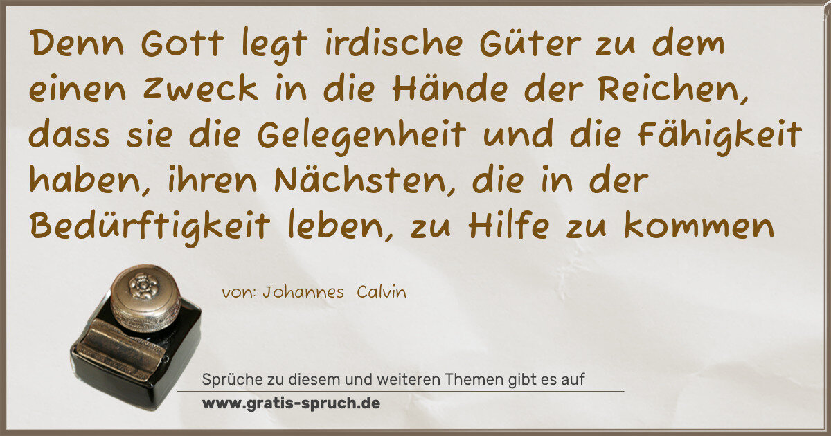 »Denn Gott legt irdische Güter zu dem einen Zweck in die Hände der Reichen, dass sie die Gelegenheit und die Fähigkeit haben, ihren Nächsten, die in der Bedürftigkeit leben, zu Hilfe zu kommen