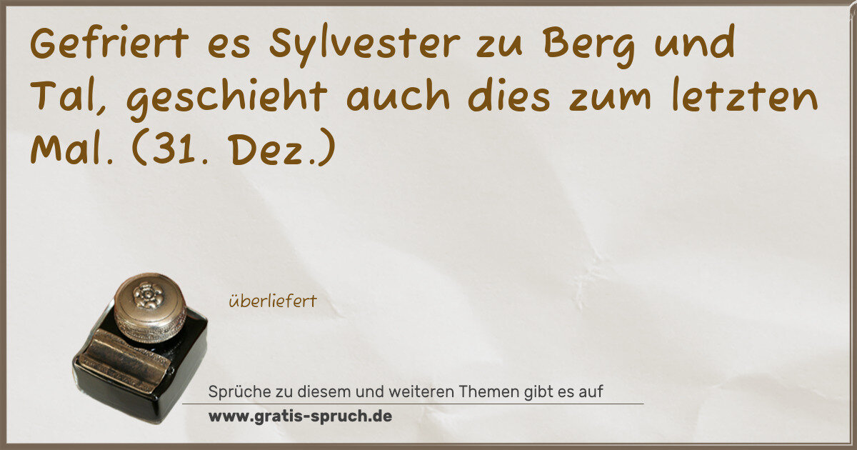 Gefriert es Sylvester zu Berg und Tal, geschieht auch dies zum letzten Mal. (31. Dez.)
