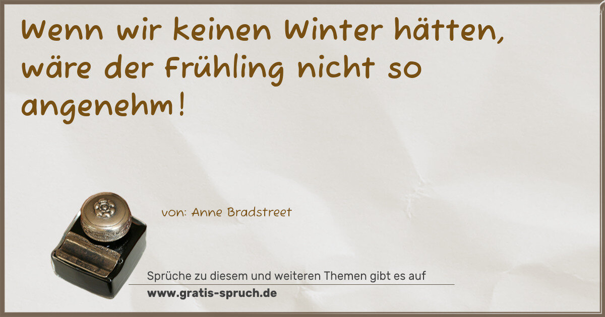 Wenn wir keinen Winter hätten, wäre der Frühling nicht so angenehm!