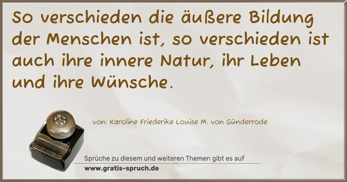 So verschieden die äußere Bildung der Menschen ist, so verschieden ist auch ihre innere Natur, ihr Leben und ihre Wünsche.
