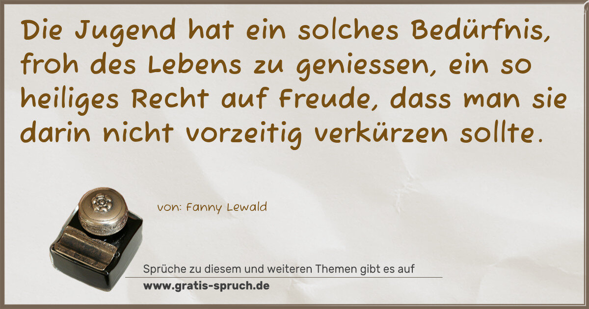 »Die Jugend hat ein solches Bedürfnis, froh des Lebens zu geniessen, ein so heiliges Recht auf Freude, dass man sie darin nicht vorzeitig verkürzen sollte.
