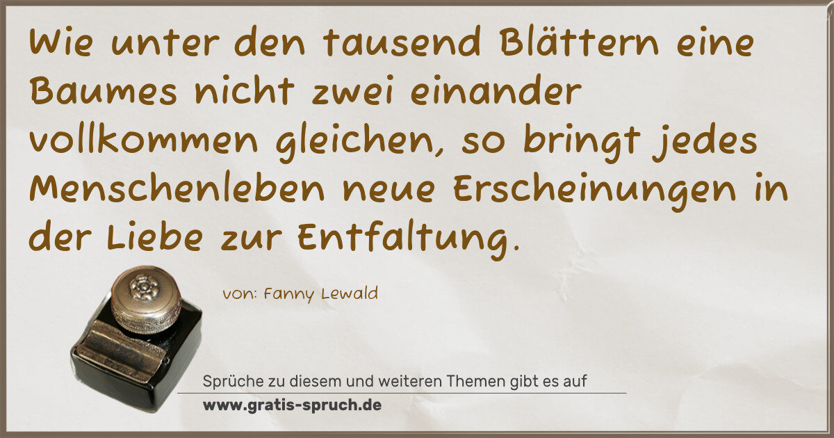 »Wie unter den tausend Blättern eine Baumes nicht zwei einander vollkommen gleichen, so bringt jedes Menschenleben neue Erscheinungen in der Liebe zur Entfaltung.