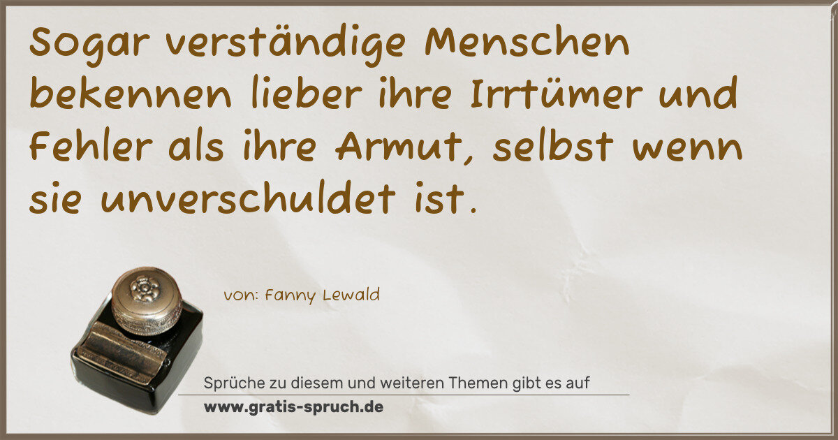 Sogar verständige Menschen bekennen lieber ihre Irrtümer und Fehler als ihre Armut, selbst wenn sie unverschuldet ist.