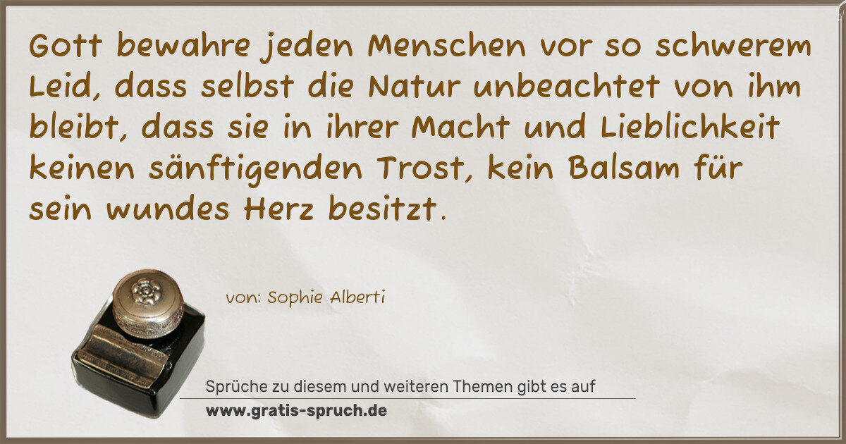 »Gott bewahre jeden Menschen vor so schwerem Leid, dass selbst die Natur unbeachtet von ihm bleibt, dass sie in ihrer Macht und Lieblichkeit keinen sänftigenden Trost, kein Balsam für sein wundes Herz besitzt.