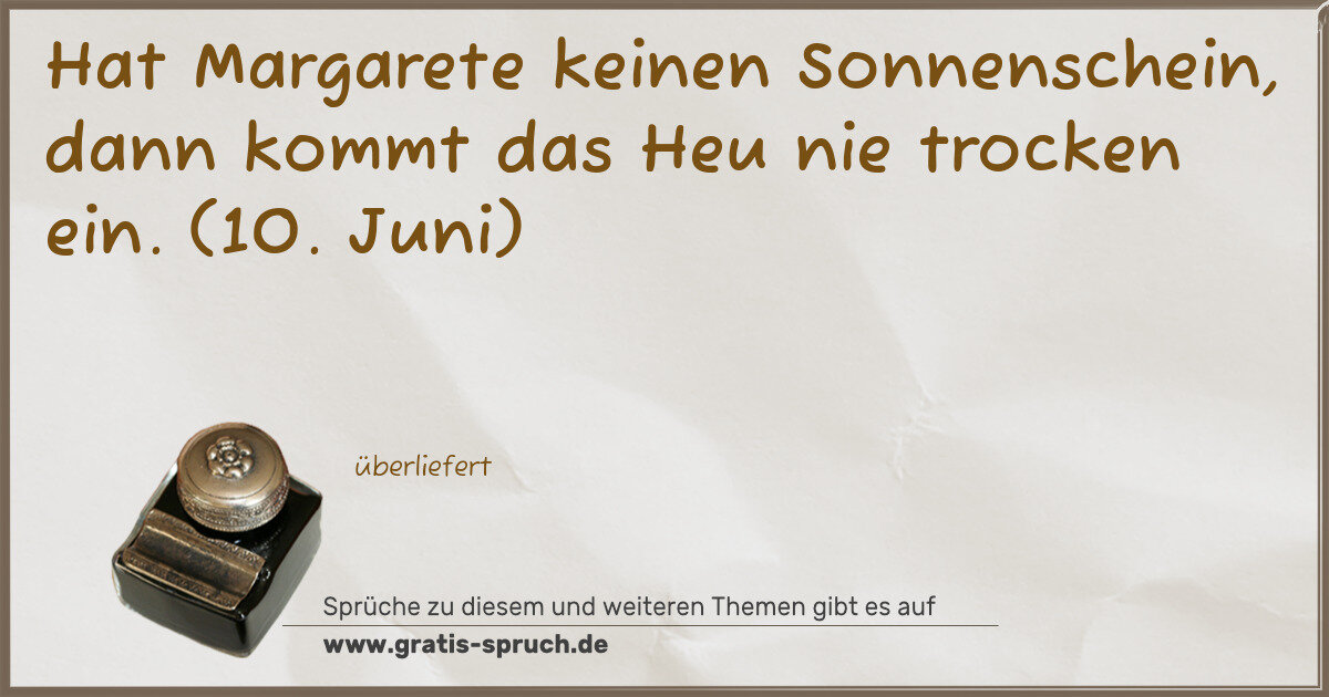 Hat Margarete keinen Sonnenschein, dann kommt das Heu nie trocken ein. (10. Juni)
