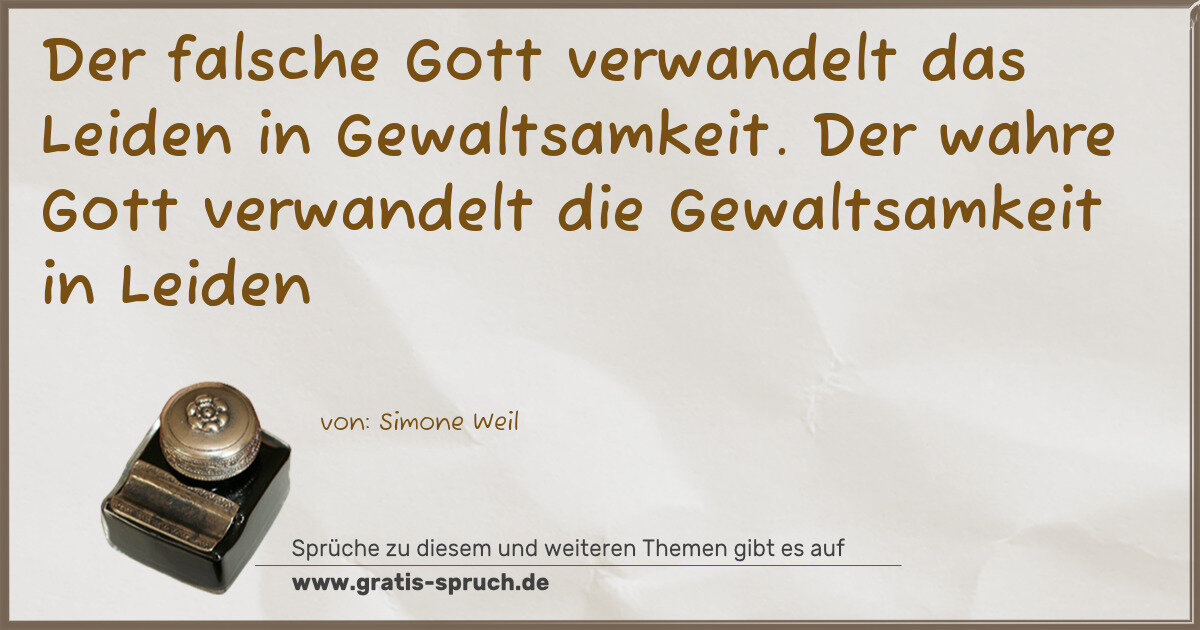 Der falsche Gott verwandelt das Leiden in Gewaltsamkeit. Der wahre Gott verwandelt die Gewaltsamkeit in Leiden